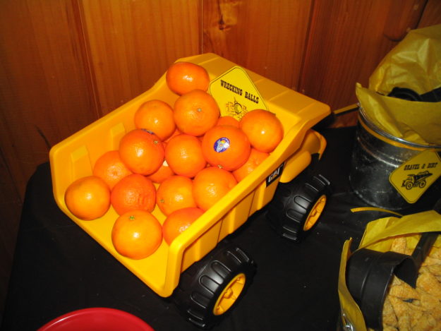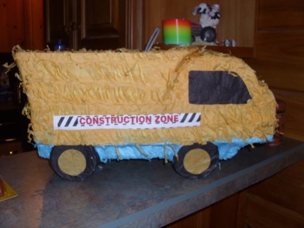We also played Pin-the-Nail-on-the-Hammer, but I didn’t get a picture of it! (The download, however, is provided at the bottom of this post!) We were planning to play a few construction party games (click here for the great ideas), but everyone enjoyed playing with the toys in the family room and then going outside to knock down a pinata…