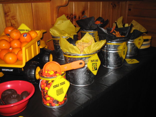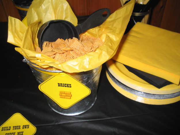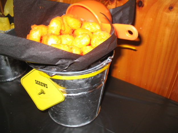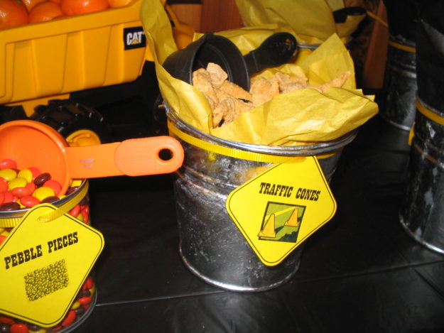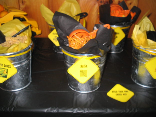 Food-in-a-bucket Construction Party labels (Print on yellow or orange cardstock)