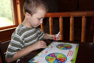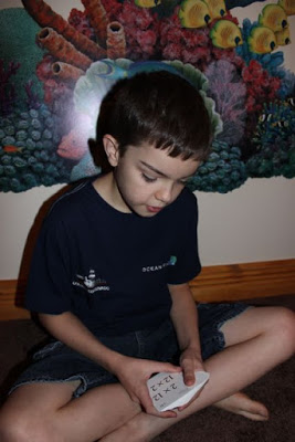 10:50 AM: Stephen works on flashcards while David works on an addition math game. {no photo of math game today, but below is one we took of the same game on a different day.}