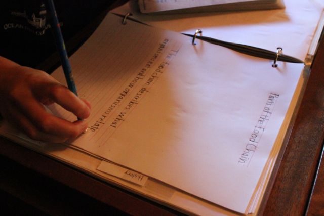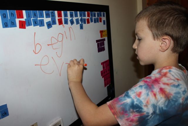 After IEW, Stephen recites the adverb chart orally (we are reviewing all charts and definitions randomly right now, since this is our third year in Essentials). Then he completes his All About Spelling lesson and is done by 3:45 PM.