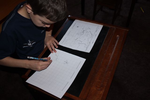 {I’ll take what I can get, especially on the first day that Daddy has returned from Brazil.} Stephen, the family’s geography fanatic, continues to work on a grid map until 9:50 AM.