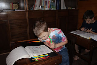 2:30 PM: David works on his spelling lesson (All About Spelling) while Stephen works on an IEW key-word-outline for one paragraph and writes a rough draft for another paragraph.