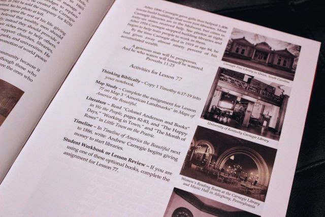 Integrated subjects. Not only do we study history, we get to explore national parks, unique cities, and American landmarks. We learn about composers, authors, and poets. It all ties back to God. Bible, geography, literature, biographies, history, and even some science are combined together into one story about America’s history.