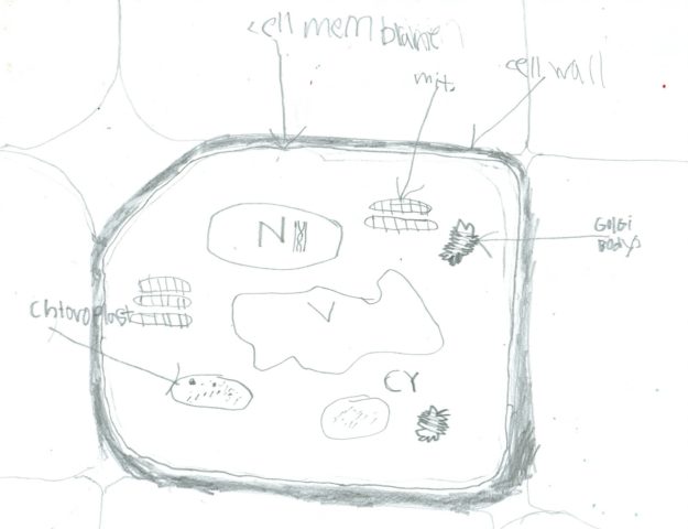 Stephen and David sketched an animal and plant cell while singing their handy-dandy cell songs.