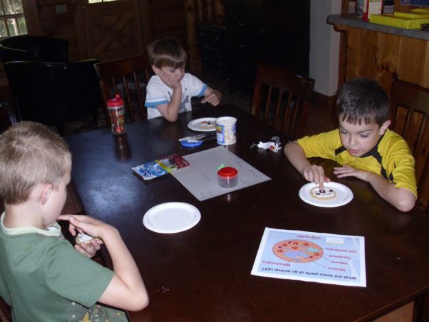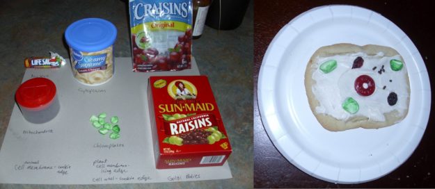 Finally, we made edible cookie cells. Only we had to improvise on almost every ingredient – because I really need to go grocery shopping right now. (By improvise, I mean the original idea called for Jello, not cookies… and every other ingredient is different, too.)