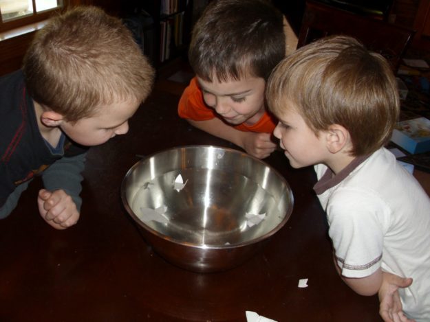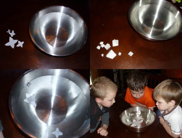 If you add some food coloring along the folds using a q-tip before placing it in the water, you can see how the water is carried through the “petals.”