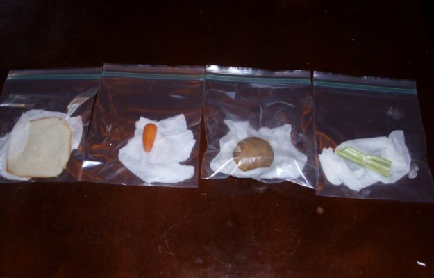We’ve been trying desperately to grow gunk, but it’s not working thus far. Why is it that when I want to grow gunk, I can’t? Guess we will just have to do it the natural way: leave some leftovers in the fridge for a while… (But maybe our experiments will work – I am being totally impatient about it! I don’t think it’s asking too much to expect to see it growing right before my very eyes….)