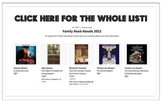 Now it’s your turn. What were your family’s favorite read-alouds in 2022? Do you have any recommendations for what should be in our queue for 2023?