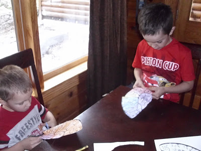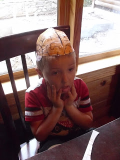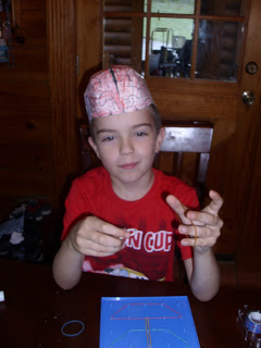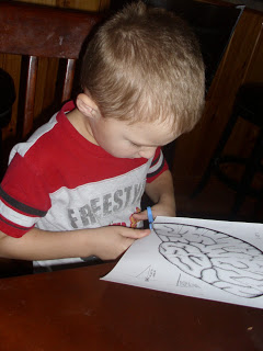 Then we made brain hemisphere hats out of paper. Stephen used it for his presentation this week, and because I currently teach his class, I had the privilege of entertaining the kids with it before class started. 🙂