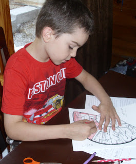 According to historic legend, Betsy Ross created the first stars and stripes flag in 1775 under instructions from General Washington. I used the instructions at USHistory.org to replicate the “one-snip star” that Betsy Ross used to show how simple it is to make a 5-pointed star. For someone who is not gifted in the crafty department, this was REALLY NEAT, and I was so proud that I could actually do it! We also are coloring the following Crayola pages: Betsy Ross, Paul Revere, Thomas Jefferson, Benjamin Franklin, and Thomas Paine’s Common Sense. And we listened again to this great audio recording of Paul Revere’s Ride by Henry Wadsworth Longfellow.