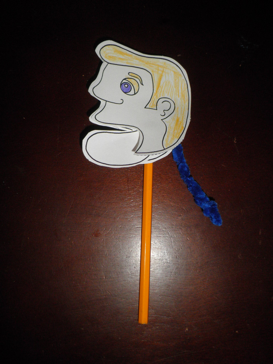 Aunt Sherry sent the boys a book called 10-Minute Puppets by Noel MacNeal (the puppeteer for Bear in “Bear in the Big Blue House”). If you know how I am with shortcut methods of doing just about anything (e.g., recipes with less than 5 ingredients or science experiments that take less than 5 minutes), it won’t surprise you that I really love this book! We spent a good part of last weekend making and playing with puppets.