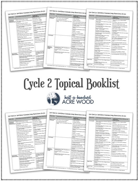 After many hours, I’ve finally finished updating our Cycle 2 Booklist! I have not reviewed or read all of these books, although I have sorted through book reviews and recommendations by others I trust in order to compile this list, including (but not limited to) suggested resources from Honey for a Child’s Heart, Timeline of Classics, The Classical Reader, Sonlight, Tapestry of Grace, Veritas Press, and Classical Conversations, as well as the 1000 Good Books List, Gospel Coalition, Old-Fashioned Education, IEW’s Books for Boys and Other Children Who Would Rather Build Forts All Day, and Ambleside Online. (I have a ream-of-paper I reference along with an assortment of catalogs when I make my booklists.)