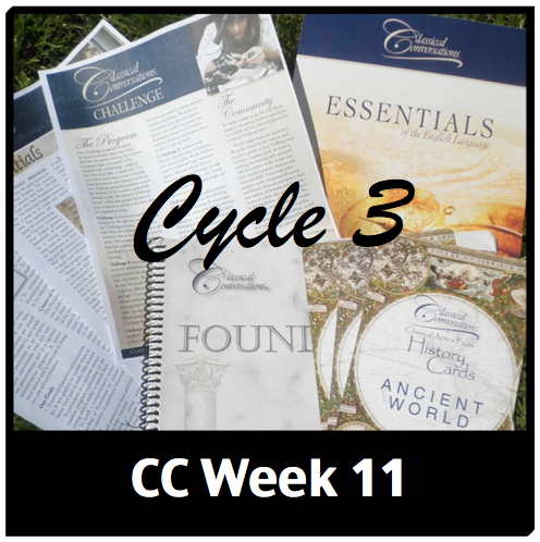 All of the following resources (and more) have already been available (organized by subject) on our Cycle 3 Resources Page. There are several resources on our Cycle 3 Subject Resources Pages that span multiple weeks. You will not find memory work verbiage or other copyrighted information in my links lists or in my documents.