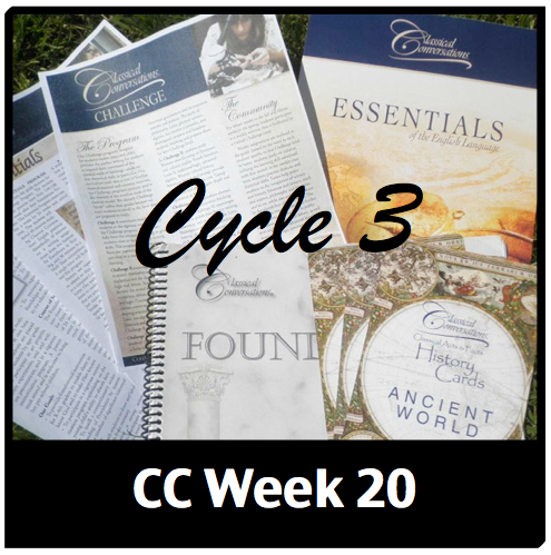 All of the following resources (and more) have already been available (organized by subject) on our Cycle 3 Resources Page. There are several resources on our Cycle 3 Subject Resources Pages that span multiple weeks. You will not find memory work verbiage in my links lists or in my documents.