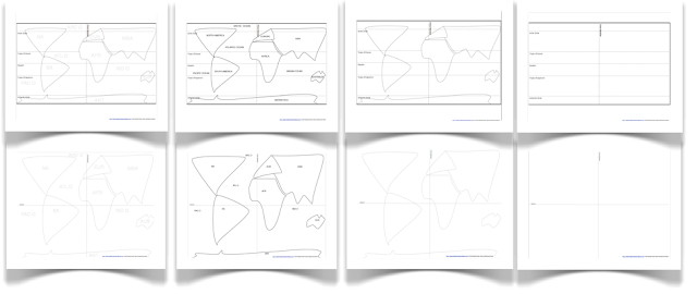 Blob Maps with Equator & Prime Meridian Only. To download a free copy of each page shown below, click on the captions below each picture.