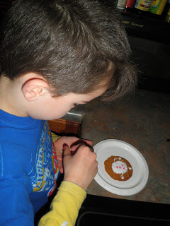 In this case, it’s a small flat or slightly raised cake with icing and hearts on top. Specifically, it’s a pre-packaged, Betty-Crocker type of cookie called “Pumpkin Spice” because it was on clearance at Wal-Mart.