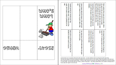 Homeschoolshare’s Character Lapbook. My FAVORITE PART about these are the Who’s Who Sorting templates. The boys have re-visited this completed lapbook to sort through them over and over again. Stephen reads them, and David gives a thumbs up or thumbs down depending on which kids are choosing to do what’s RIGHT and which kids are choosing to do what’s WRONG. If you don’t have the time to do a lapbook, you might just try out the Who’s Who Sorting templates for each character quality. It’d make a good little File Folder Game…