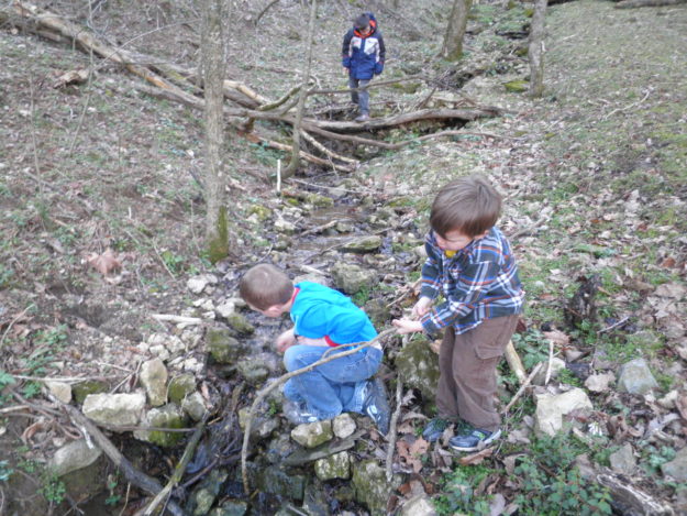 In these moments I draw closer to God, even though I feel farther away. He has given so much, and yet I want more. And despite my utter failing, His unfailing love proclaims itself to me in the woods, in the trickling waters, in the moss-laden rocks, in the rippled reflections of the pond, in the three precious blessings He has bestowed upon me. And He shows me once again that He will fill my empty spaces, those places that feel vacant and void when I am raising three boys on my own, when my heart is stretched halfway across the world.
