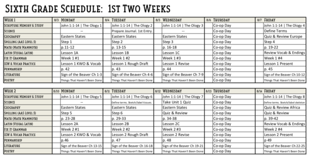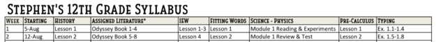 At the beginning of the semester, I usually hand a simple single-page syllabus to our high schoolers (the first two weeks are shown below)…
