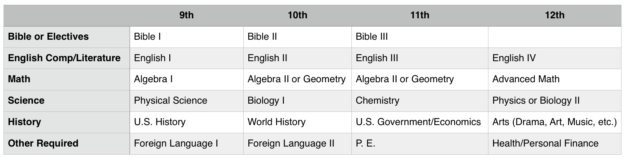 This is just one way to fulfill required high school credits. Although we are not professional college entrance counselors, this basic course of study qualifies students to receive a high school diploma at an accredited Christian school in the state of Tennessee. Consult your state education standards, a local school guidance counselor, and/or your preferred college’s entrance requirements to further modify this scope & sequence for your family.