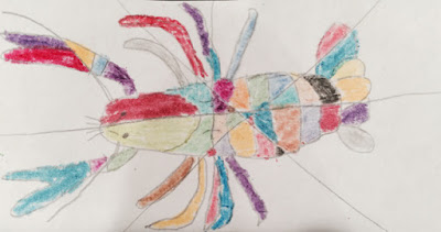 Check out what Julie from Cranberry, PA did with her class! She took her students through the drawing of a crayfish (topview) and added an abstract art spin to it!