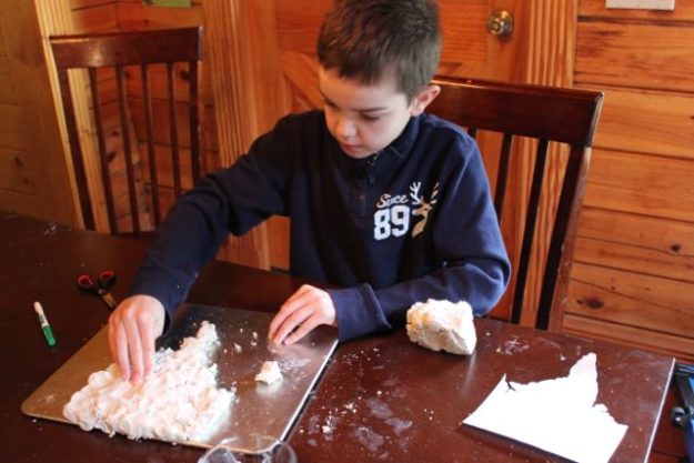 ….And for the Geography Fair, Stephen chose to make the Indus River Valley out of Crayola’s Air Dry clay and then paint it with acrylics.