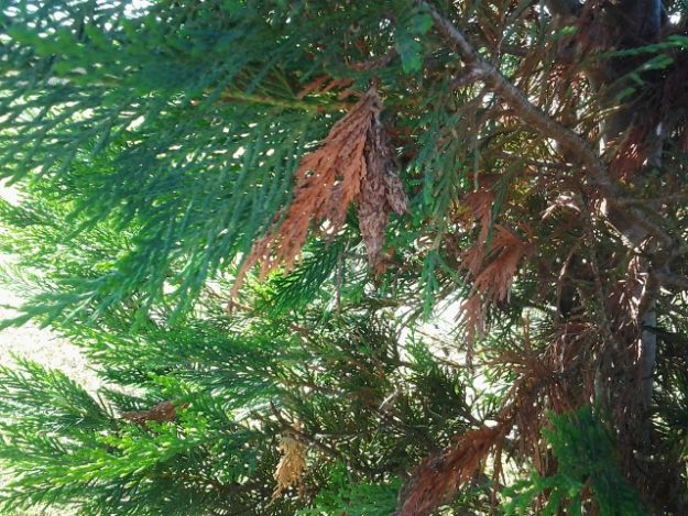 ‘Round about April-June, hundreds to thousands of itsy-bitsy caterpillars will hatch and crawl out of the mummified remains of their mom’s carcass and float away in the wind on a strand of silk. (Some sources say that mama moth drops out of the cocoon and dies. I think it’s more interesting to say it’s a mummy.) With that kind of knowledge, who wouldn’t want to cut a bagworm bag open? After all, we’ve never seen a mummified worm before!