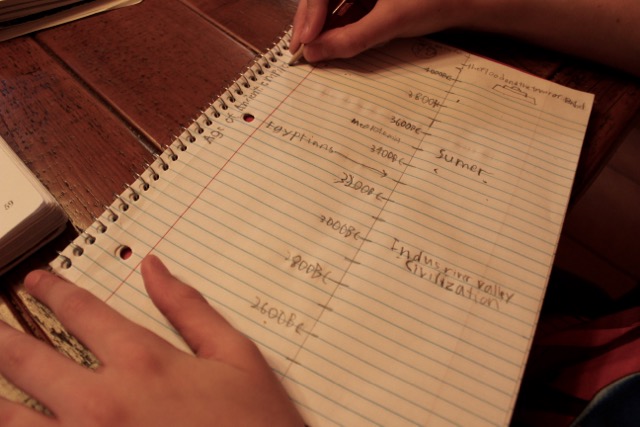 Timeline. This takes just a little bit of forethought because your child has to choose a scale for the timeline. As I mentioned in our Accordion Timeline Notebooking post, you will likely want to adjust your timeline increments to allow for more events as you approach the present day.