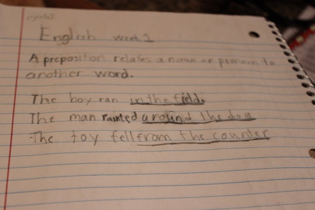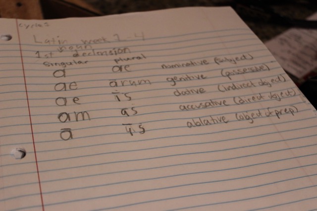 Latin & English Grammar. Instead of copying the charts and sentence task analysis sheets from our English grammar curriculum, we use a spiral notebook (for hard copies) or whiteboard (for extra practice). So. much. easier. English Grammar memory work and Latin noun & verb endings lend themselves to whiteboard practice. In fact, whiteboards are the tool we normally use to practice these subjects, but below is an example of how you might notebook ’em.
