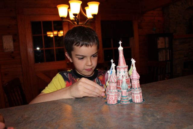 After I stored away St. Basil’s Cathedral for at least a month this summer, Stephen begged to work on it again. I was hoping we would make it like a real cathedral and not finish it in our lifetime. But, believe it or not, he is much more stubborn perseverant than I am.