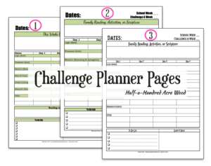 Challenge (Middle and High School) Planner Pages. Speaking of organization (or lack thereof), I finally pulled together some Challenge Planner Pages that better fit our way of thinking. You can check ’em out here.
