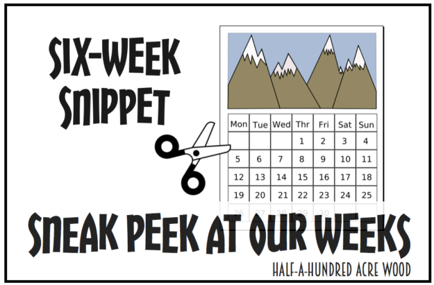 Before I mention these things, I just want to underscore the fact that we don’t do it all. The only thing we do consistently on a daily basis is reading, writing, and arithmetic. At least 2 days per week we review memory work (which oftentimes is just singing songs in the car). So… when I give a snippet of six weeks of goings-on around here, we might have just spent an hour one afternoon doing something that’s listed below. We just do little extra things that bring joy and excitement into our homeschool days. Click here to take a look at our schedule.