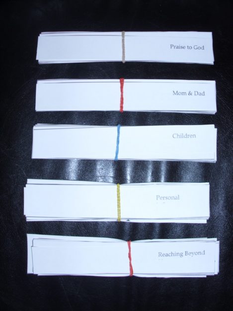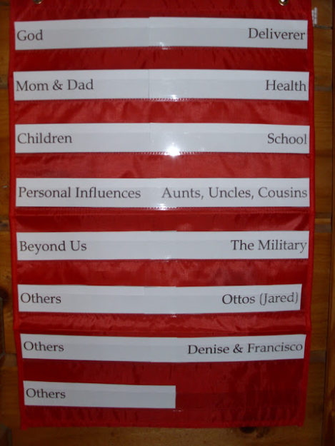Pictured above: Piles of prayers awaiting their turn in our prayer pocket chart
