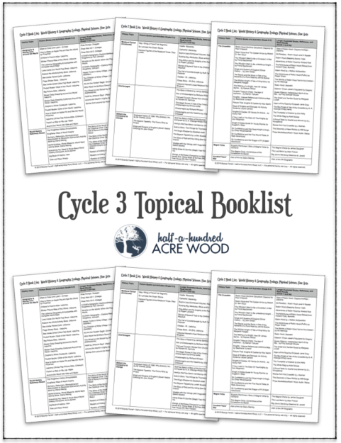 For a reading/curriculum plan that overlaps much of the memory work studied during Cycle 3 with an emphasis on America’s foundations of faith along with an integrated study of U.S. history, geography, and fine arts (along with science studies from a Christian worldview), check out our Mission: Lasting Liberty Curriculum Plan. (We’ve bundled together the entire collection of books for convenience!)